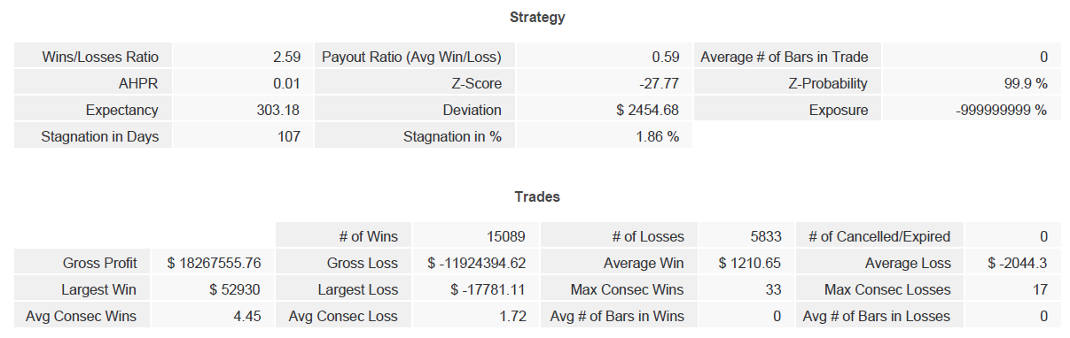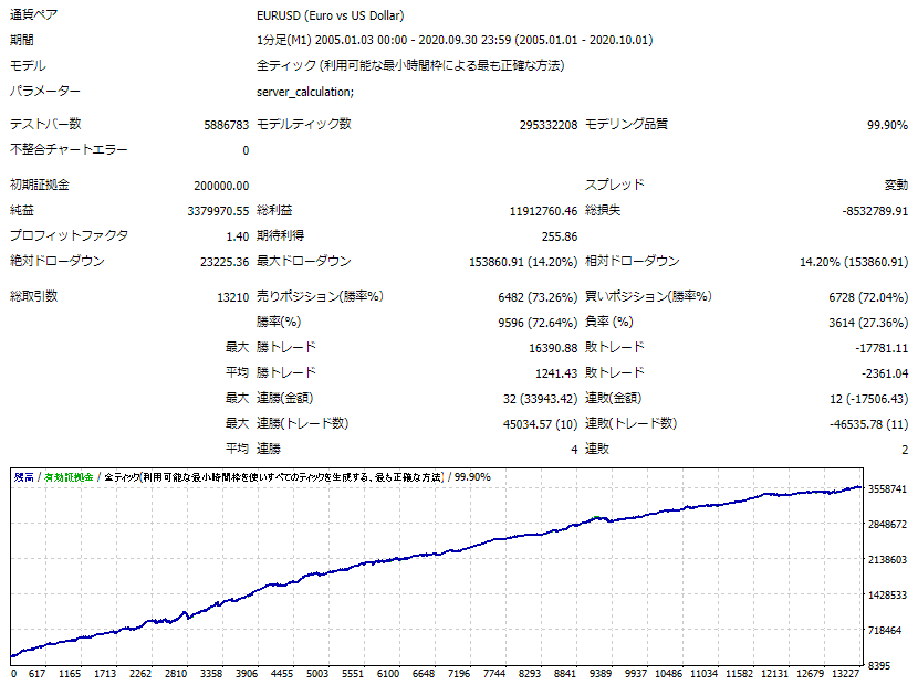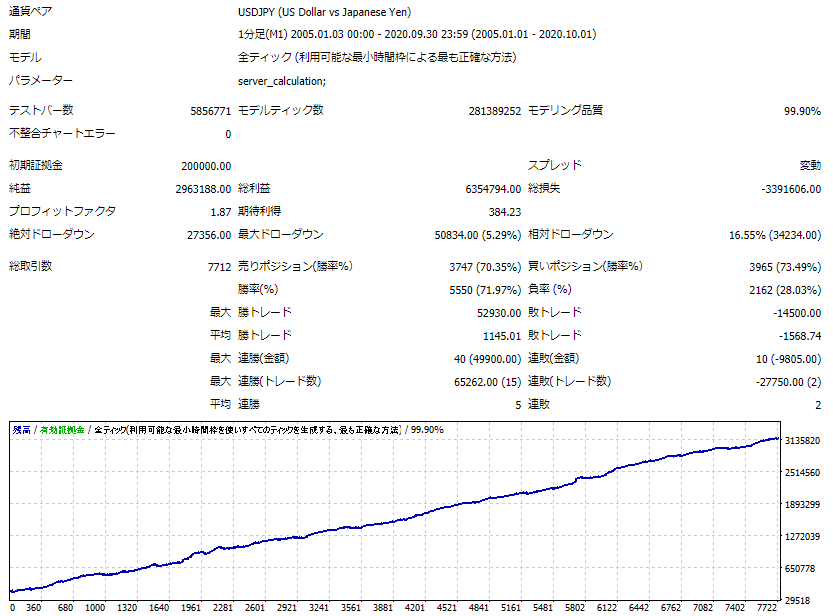 QUANT ANALYZER(EA分析ツール)での分析結果