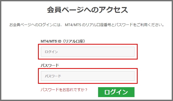 XMの会員IDとパスワードを入力してログインする。