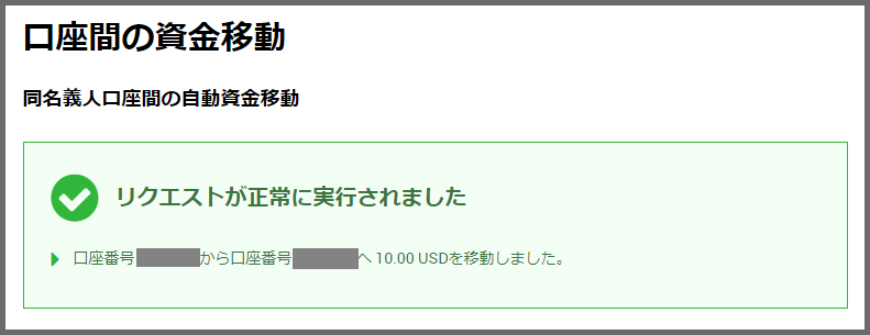 以上で、XMの口座間の資金移動は完了です。